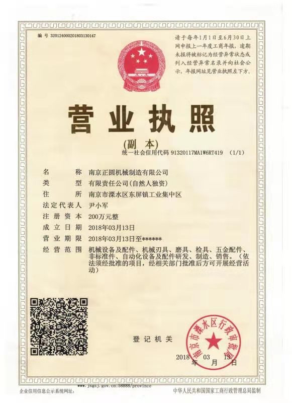 南京正圓機械制造有限公司(簡稱正圓機械)地址位于南京市溧水區東屏經濟特區工業園,距南京祿口國際機場僅30公里,地理位置好,交通發達。公司用現代企業的管理方法,致力于精細化管理和零缺陷作業的管理,立足于產品的質量管理,以其優良的品質,新穎的設計,合理的價格和完善的售后服務贏得了中外客戶的廣泛評。 公司在穩定成長的同時,以期能提供優良的產品給客戶。在多個城市有銷售及服務機構,產品質量穩定,服務到位。正...